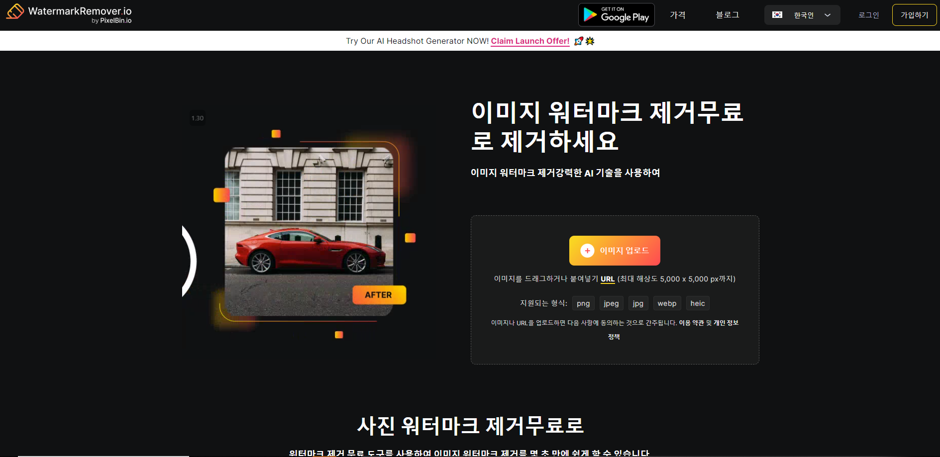 AI 기술을 사용하여 이미지 워터마크 제거하세요. 워터마크 제거 도구를 사용하고 이미지를 워터마크 없이 얻으세요.