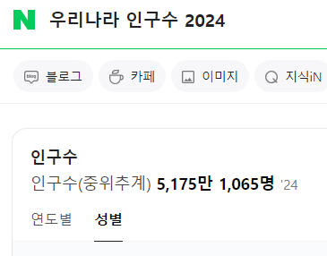 궁금해서 검색해보니, 우리나라 인구수는 5000만, 그럼 5명중 1명꼴이네요.