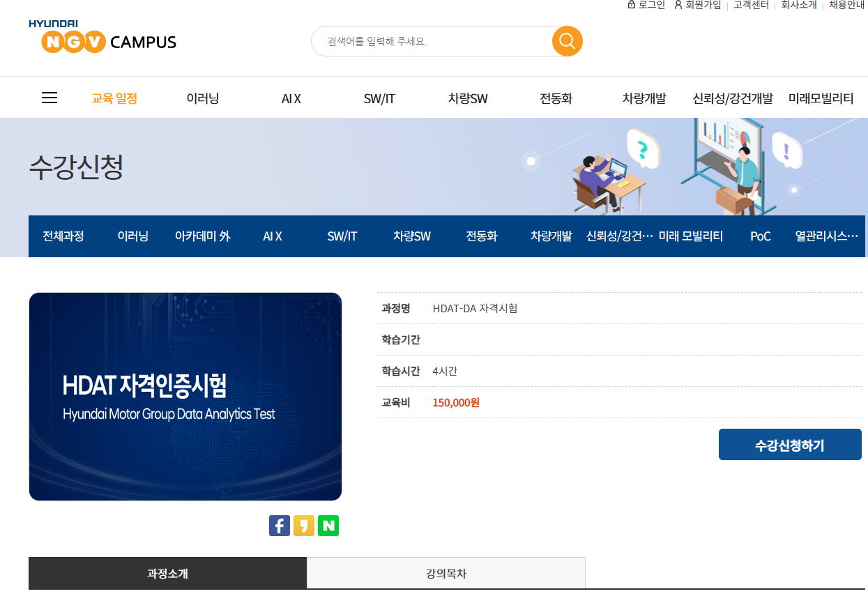 아래와 같이 HDAT 수강과정도 아직 있는걸 보니