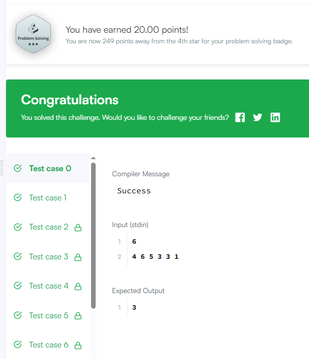 We choose the following multiset of integers from the array: . Each pair in the multiset has an absolute difference (i.e., , , and ), so we print the number of chosen integers, , as our answer.