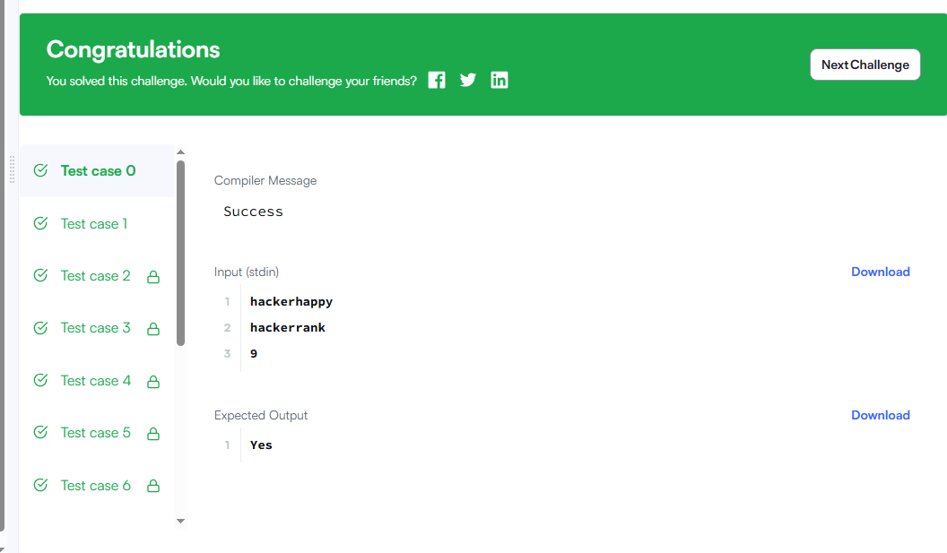We perform delete operations to reduce string to hacker. Next, we perform append operations (i.e., r, a, n, and k), to get hackerrank. Because we were able to convert to by performing exactly operations, we return Yes.