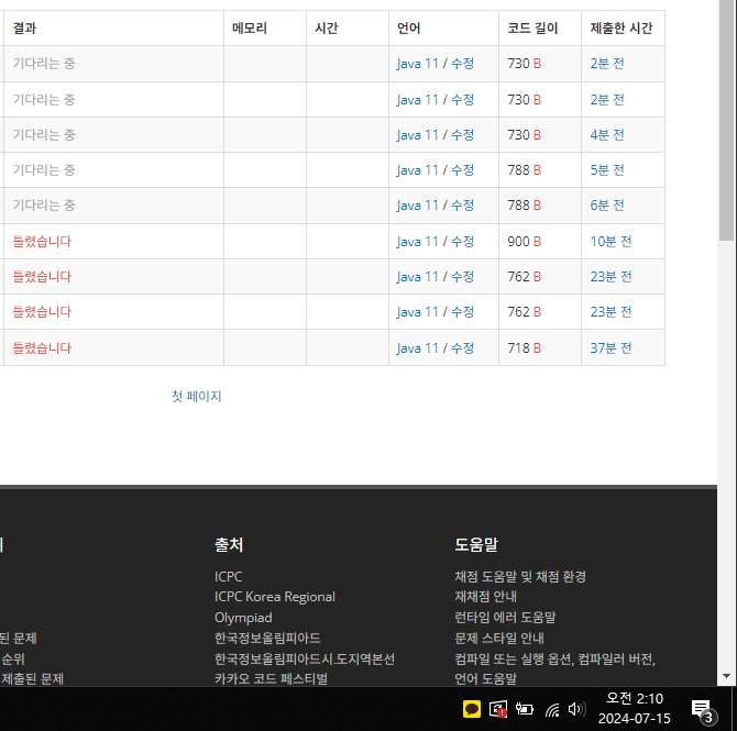 한 5분 10분 기다리니 한개씩 채점되긴 하는듯 하다.