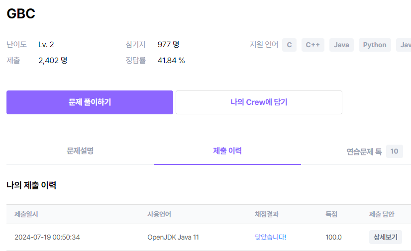 [소프티어] GBC 레벨2 자바 풀이 단순 구현