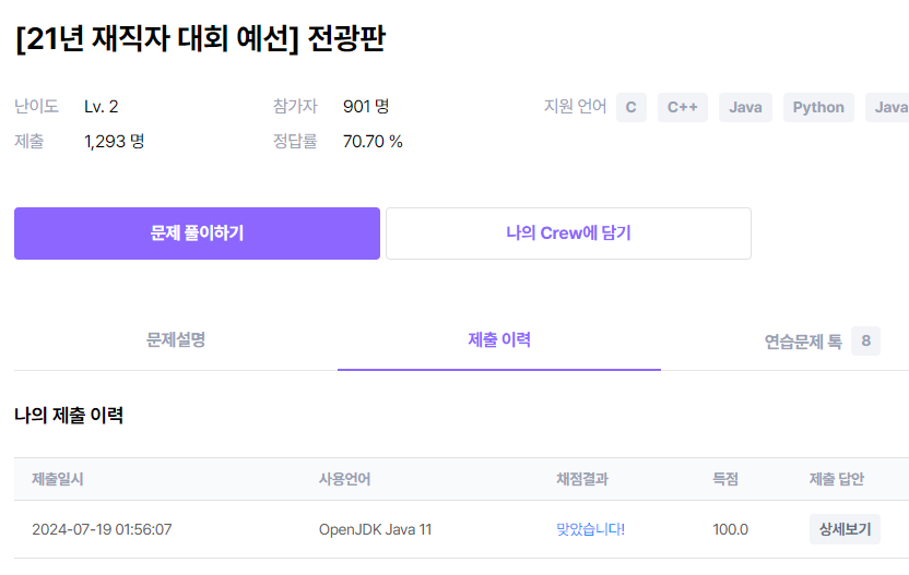 [소프티어] 전광판 레벨2 자바 풀이 (21년 재직자 대회 예선)