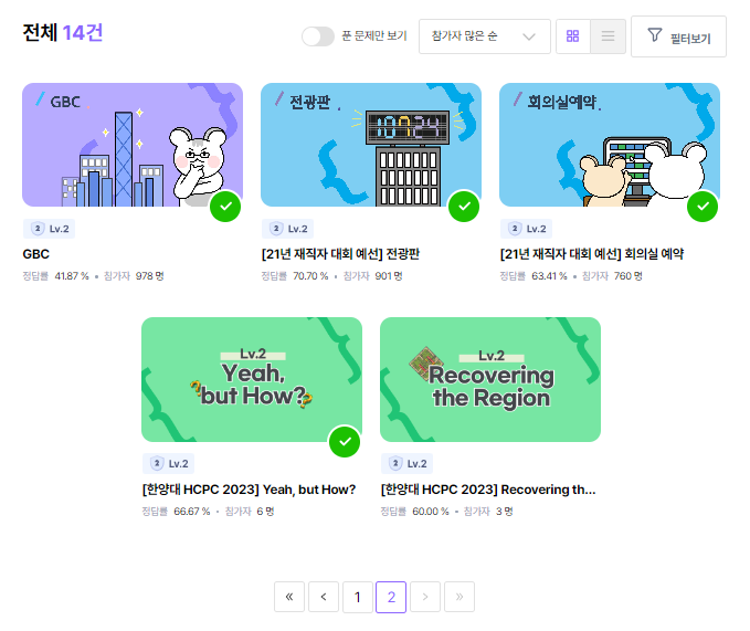 금일 점심까지만 해도 소프티어 사이트의 레벨2 문제는 총 14개였다.