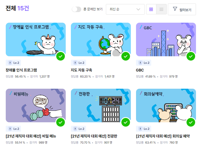 소프티어 레벨2 필터링시 총 15개의 문제가 검색된다.