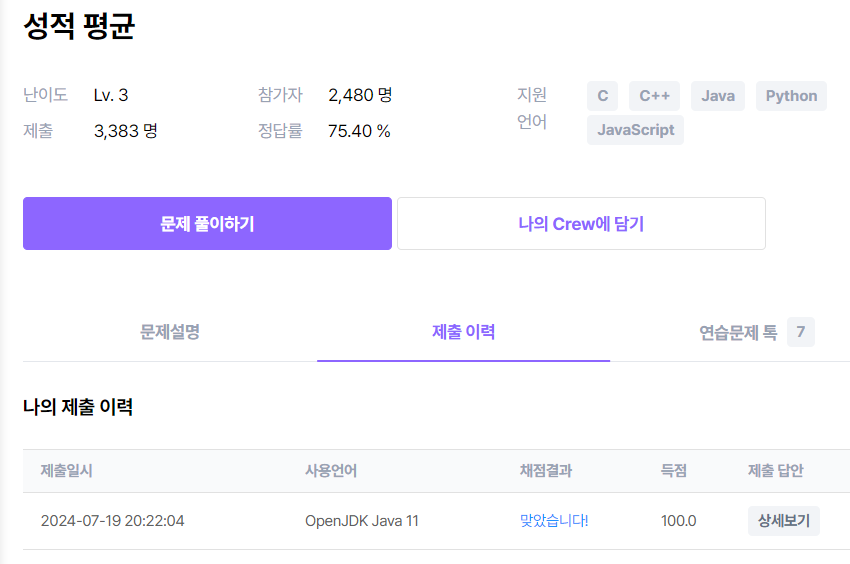 [소프티어] 성적 평균 자바 풀이 레벨3