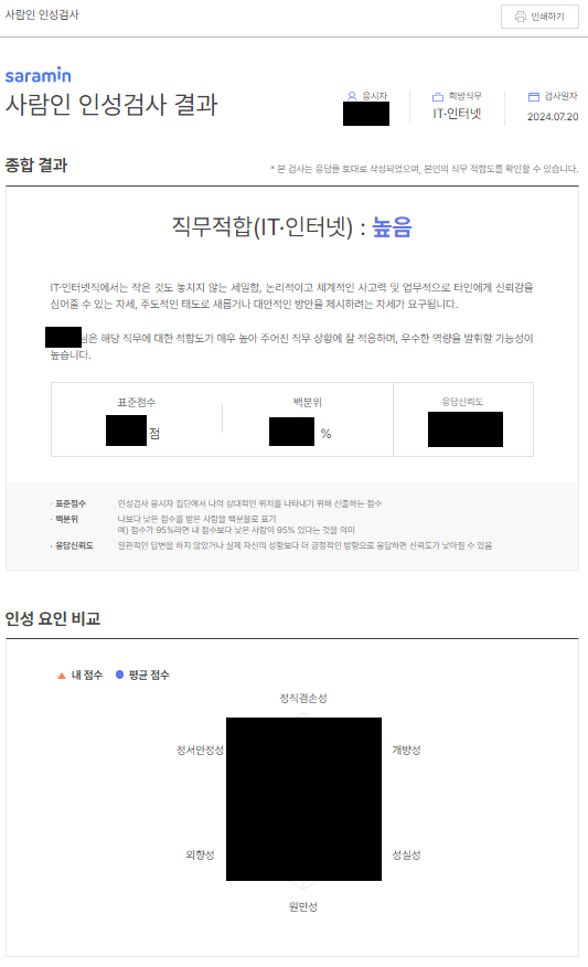 - 사람인 인성검사 무료로 응시 가능하니, 해보고 하면 좋을듯.