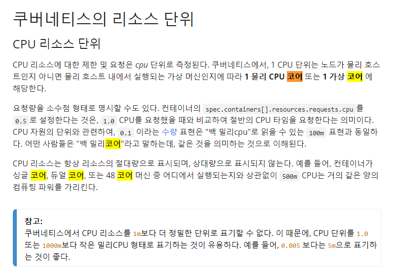 쿠버네티스에서 POD, Node의 리스소 관리(CPU, memory, 등)