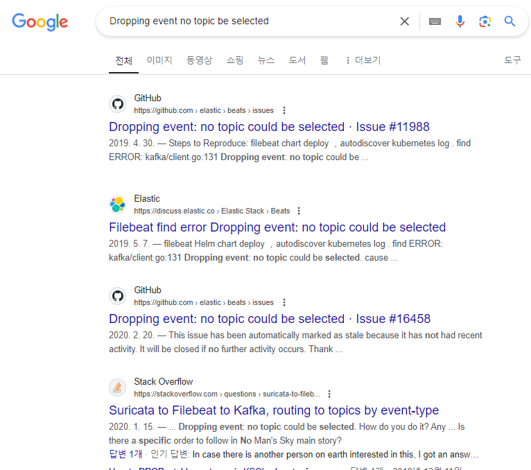 "Dropping event no topic be selected~" 의 로그는 덤으로 적재되었으니