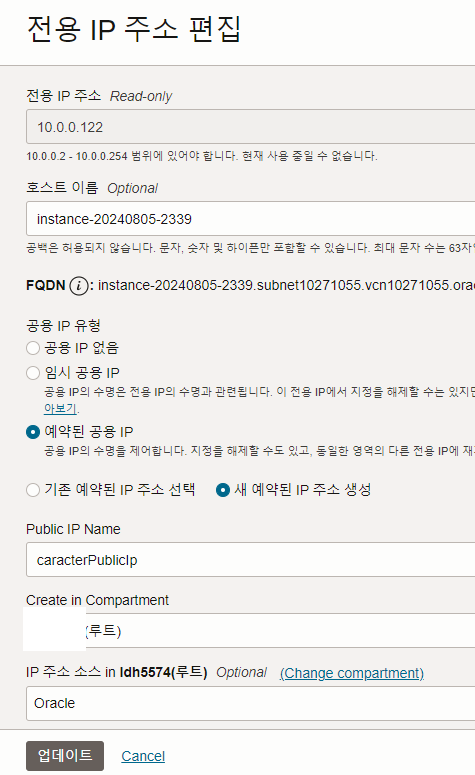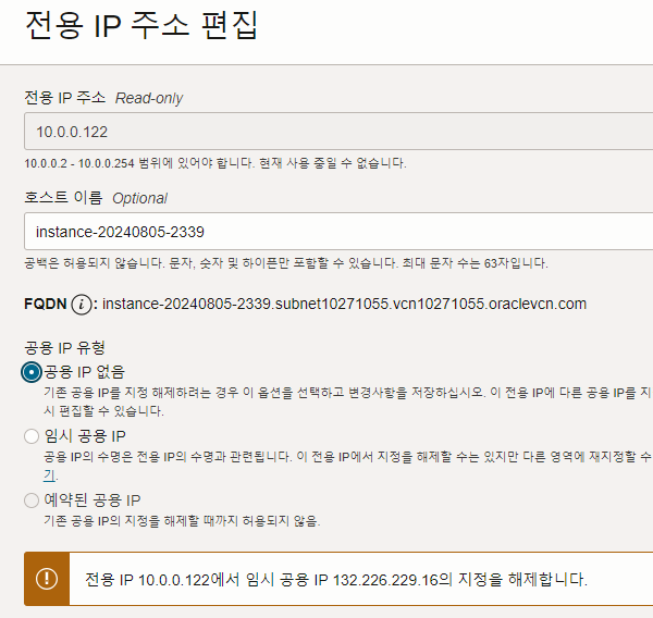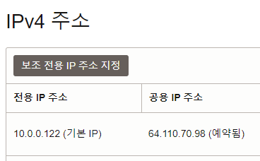 공용ip 없음 선택 후 업데이트