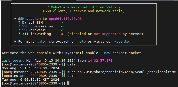 인스턴스 타임존 한국시간 적용