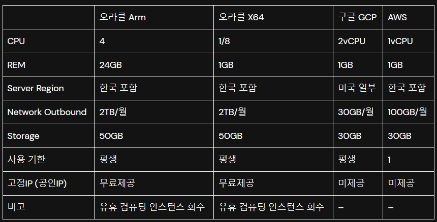 2024.07.04 - [IT/기타] - [서버] 서버 개발을 위한 평생 무료 클라우드 및 가상머신 알아보기 (+무료 호스팅 배포는 덤)