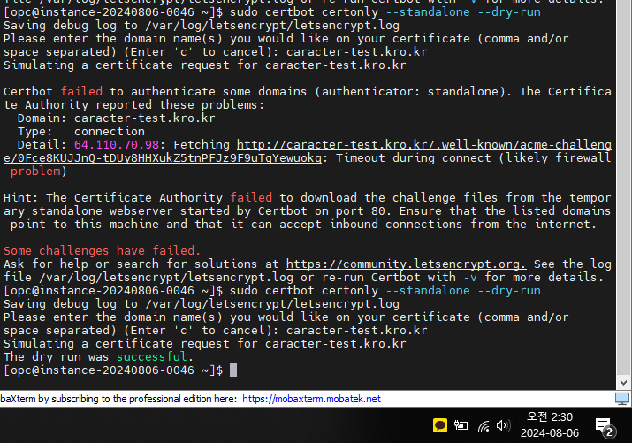 # certbot 실행 시뮬레이션