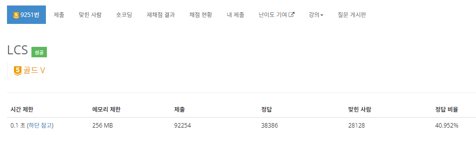 LCS(Longest Common Subsequence, 최장 공통 부분 수열)문제는 두 수열이 주어졌을 때, 모두의 부분 수열이 되는 수열 중 가장 긴 것을 찾는 문제이다.