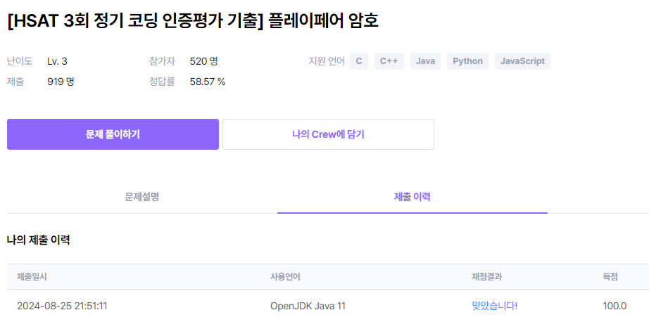[소프티어] 플레이페어 암호 자바 풀이 시간초과 해결 완료 (HSAT 3회 정기 코딩 인증평가 기출)