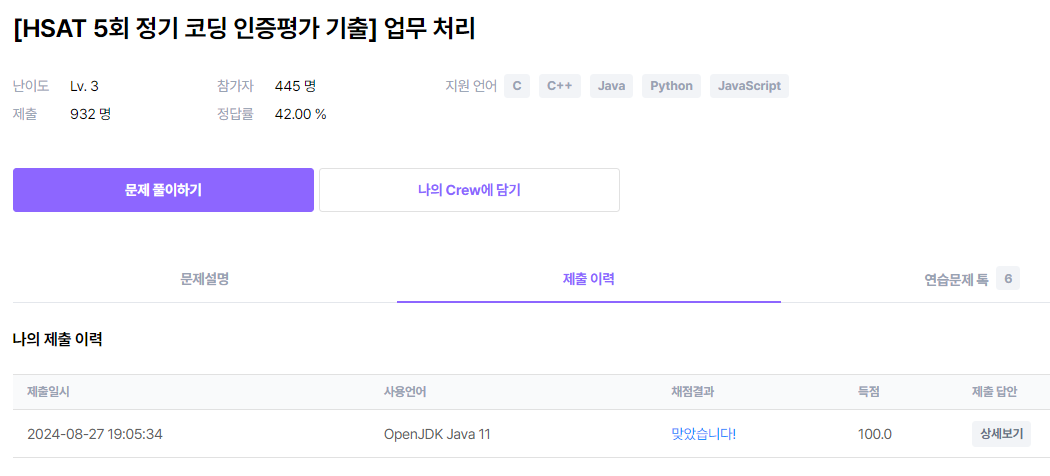 [소프티어] 플레이페어 암호 자바 풀이 시간초과 해결 완료 (HSAT 3회 정기 코딩 인증평가 기출) (0) | 2024.08.25 |