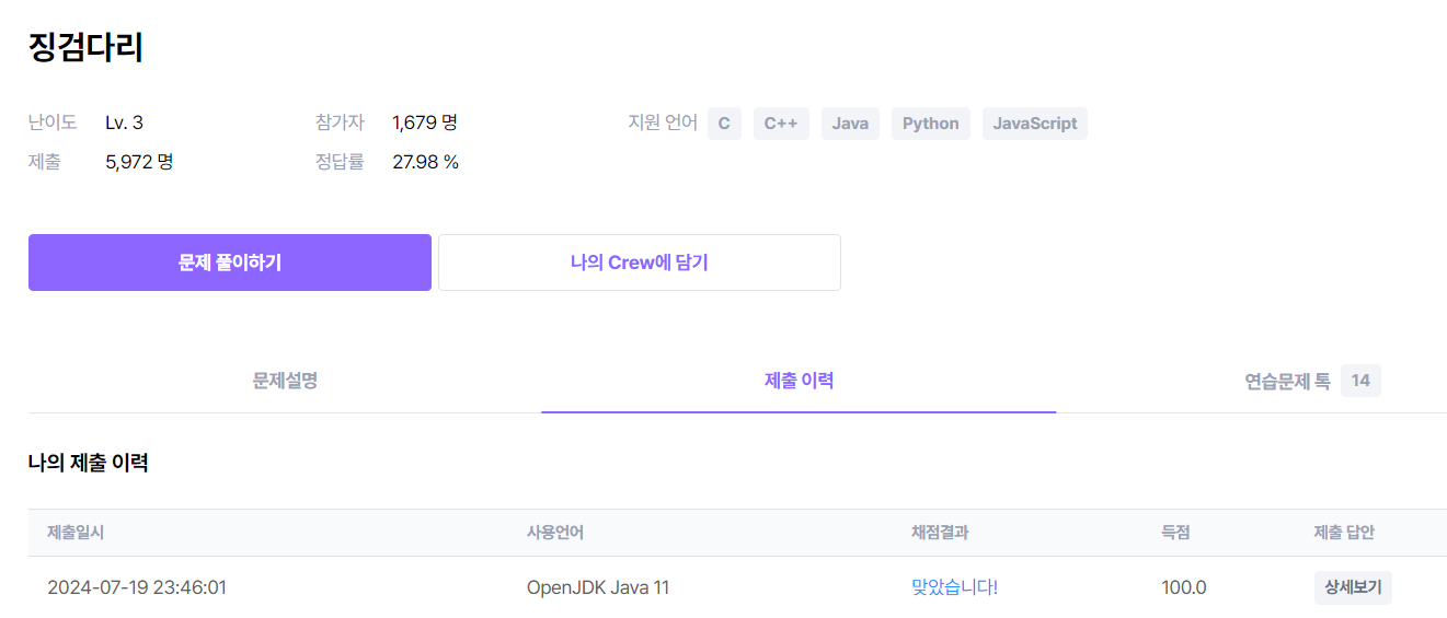 [소프티어] 징검다리 레벨3 자바 풀이 DP알고리즘 DP문제는 어려운데 재밌다.급한대로 보카 영단어책에 마구 적어봤다. 역시 디피야 디피레벨3 체감중... 링크https://softeer.ai/practice/6293/history?questionType=ALGORITHM Softeer - 현대자동차그룹 SW인재확보플랫폼 softeer.ai 문제스펙 미리보는 해설A돌에서 B돌로 움직일때처럼1칸 1칸 움직이는 경우에최대값을 dp배열에 저장했다. 2~n 번째 돌을 반복문돌리면서1~n-1 번째 돌에 대해서 하나하나씩 최대값 비교. 정답 코드import java.io.*;import java.util.*;public class Main { public static void main(Stri..